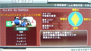 ベリーハードのミッションに至っては、ミノフスキー粒子濃度100%で、フレンドアタックだったかな? 味方の弾も当たります。ってのになり、そのベリーハードの「ジャブロー争奪戦」をクリアしたら、でました。
