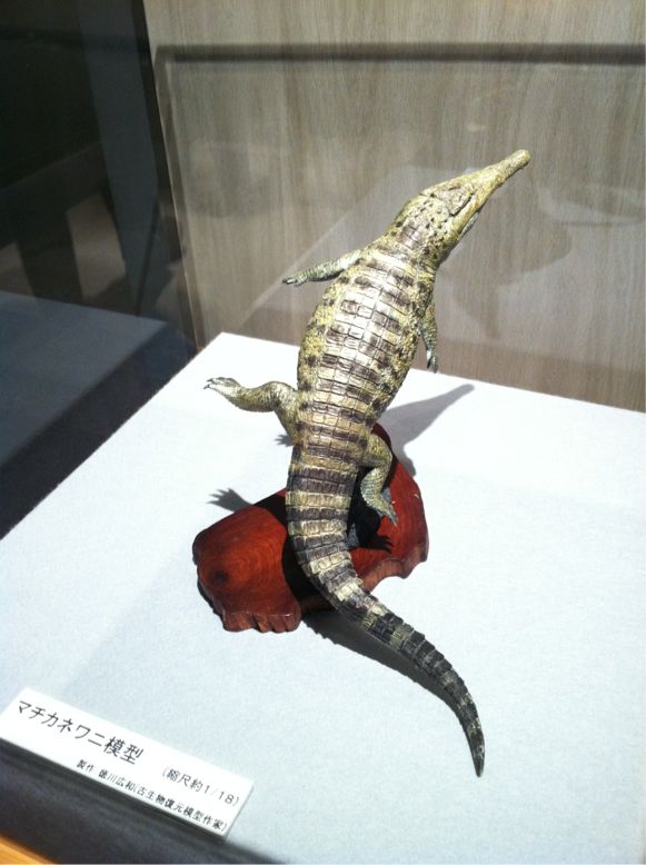 入り口に入ると、そのマチカネワニ の、レプリカ骨格が壁に展示されてるのが圧巻です。