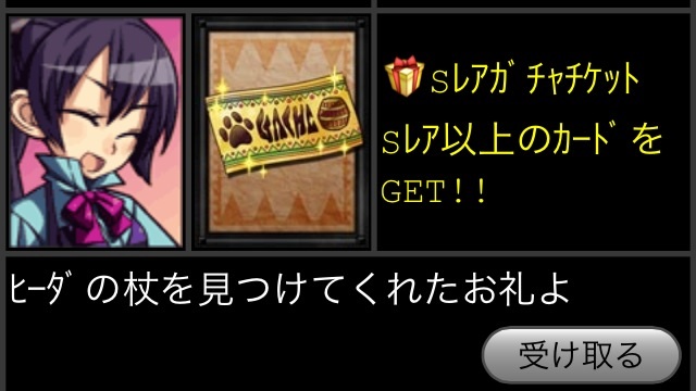 まぁ、ある程度、無課金でも、それなりに進めてポイント稼げたら、必ずもらえる、レアガチャのチケットでした。