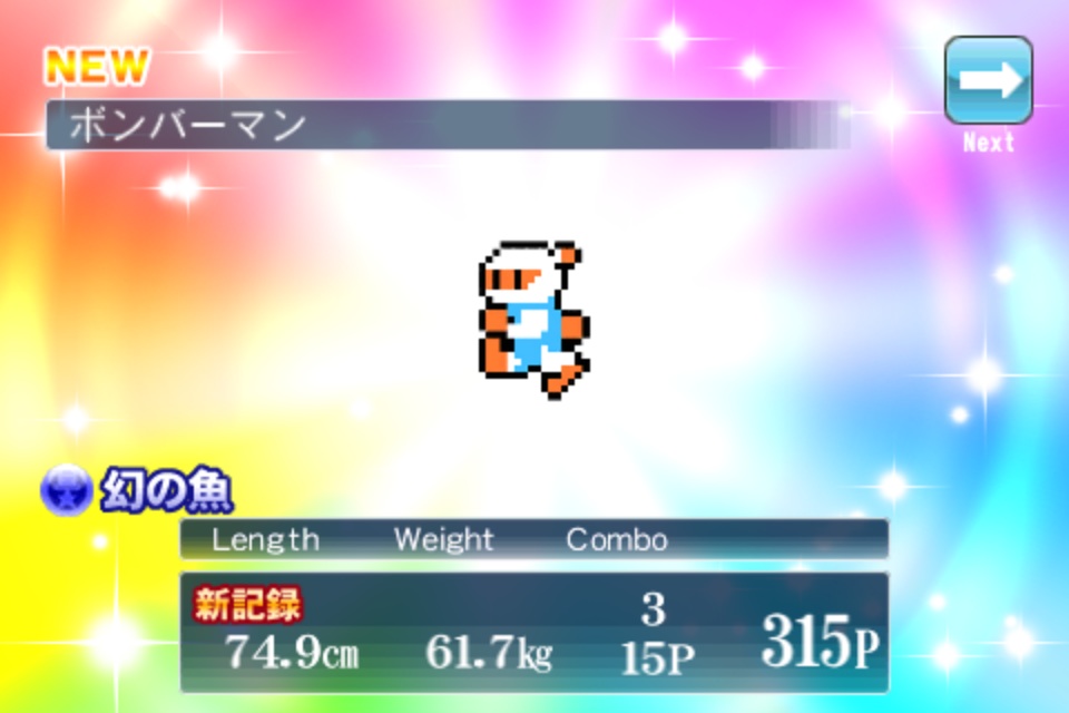 幻の釣りエリアでは、ボンバーマンが釣れました。