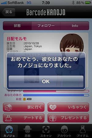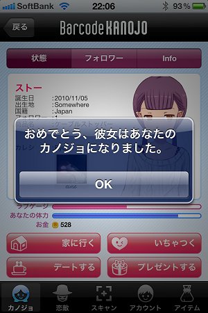 2010年10月末に正式リリースされ、当初は、少々話題になっていた、iPhone アプリのバーコードカノジョ。