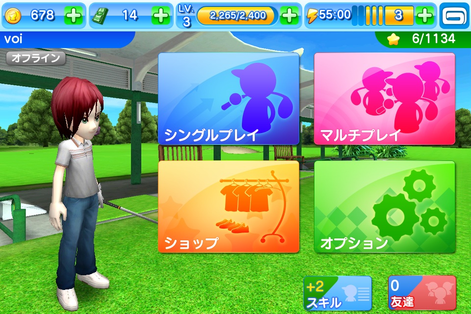 PSPとほぼ同じの、ゴルフゲームですが、そこは、基本無料で連続してプレイしたければ、課金せよという、モバゲー、グリー商法の腐った仕様です。