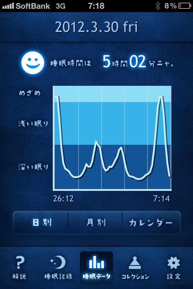 睡眠記録アプリ ってのを試しました。