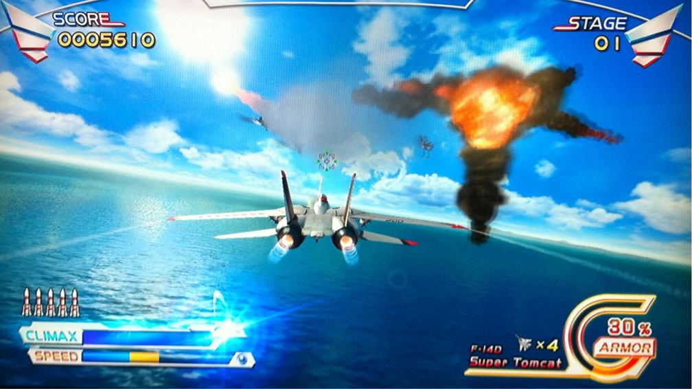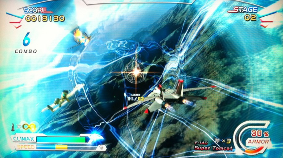 ゲーム中に、パワーゲージを使ってクライマックスモードってのにすれば、2秒ほど、スローになって、緊急時を回避できたり、敵をたくさんロックオンできたりします。
