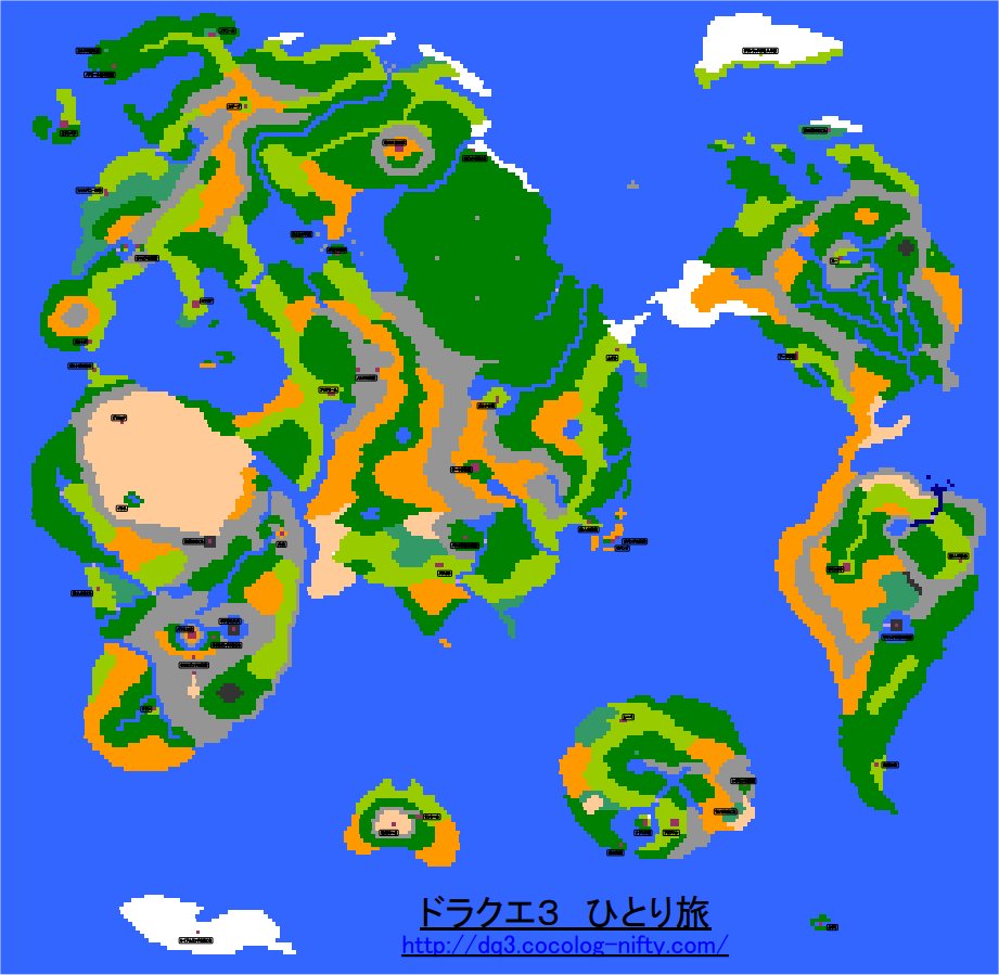 そうそう、ドラクエ3 って、結構世界地図をベースにしてるとこが多くて、地名なんかも、もじってるのが多いんですよね。そのまんまもあったり。