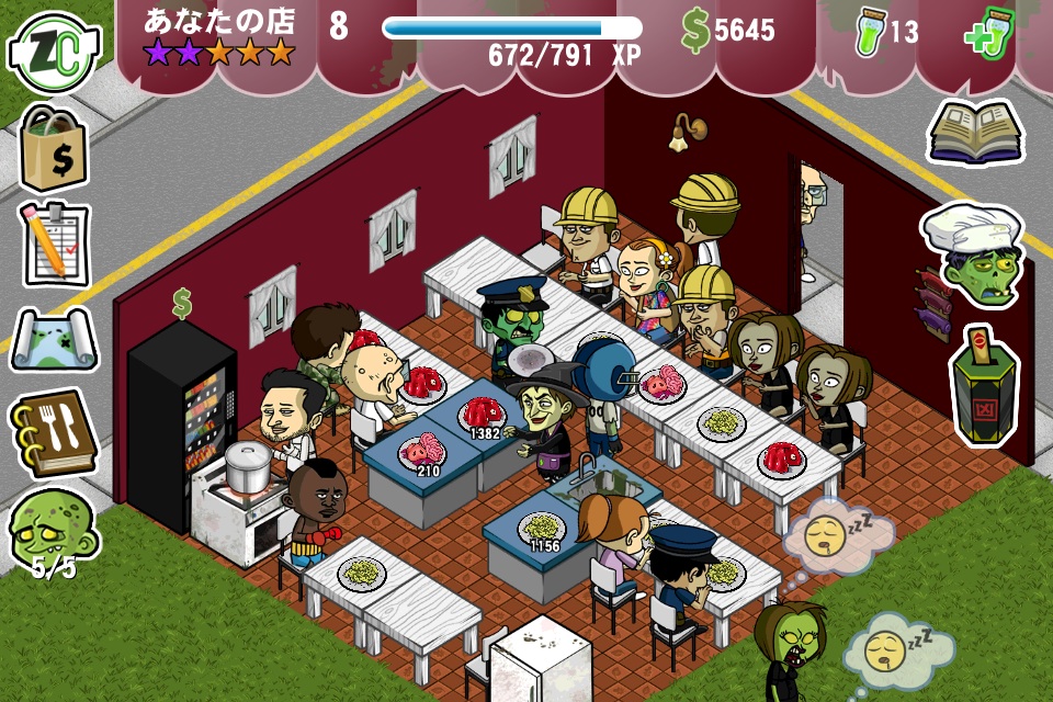 最初はこんな感じで、だんだんお金を稼いで、広くして、ゾンビやメニューを増やすって感じ。