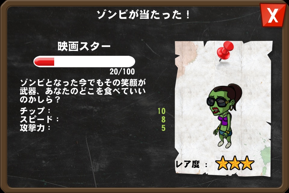 でもって、いわゆるガチャなんですが、下から二番目の中凶って、くじを引いたら、こんなゾンビがゲットできましたw
