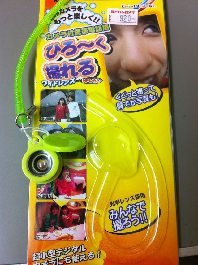 最近では、雑誌の付録なんかにも付いていた、携帯電話のレンズに、取り付ける、おもしろ撮影が出来るレンズで、広角のレンズが、まともに使えそうなので、試したことがありました。