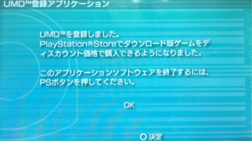 4.「UMDを登録しました」ということで、これで登録完了のようです。