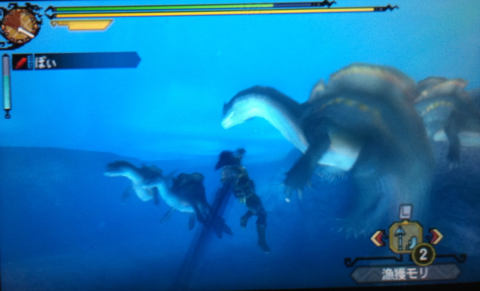 体験版を試したところ、カメラ切り替えの十時キー操作は、下画面での操作と言うことで、あぁ、なるほど、けっこう慣れたらいけるかな? なんて思って、拡張スライドパッドの購入は見送ったんですが、今作の醍醐味の一つ、水中戦が難しすぎて、やっぱり、拡張スライドパッドあった方がいいかなぁ? なんて思ってます。
