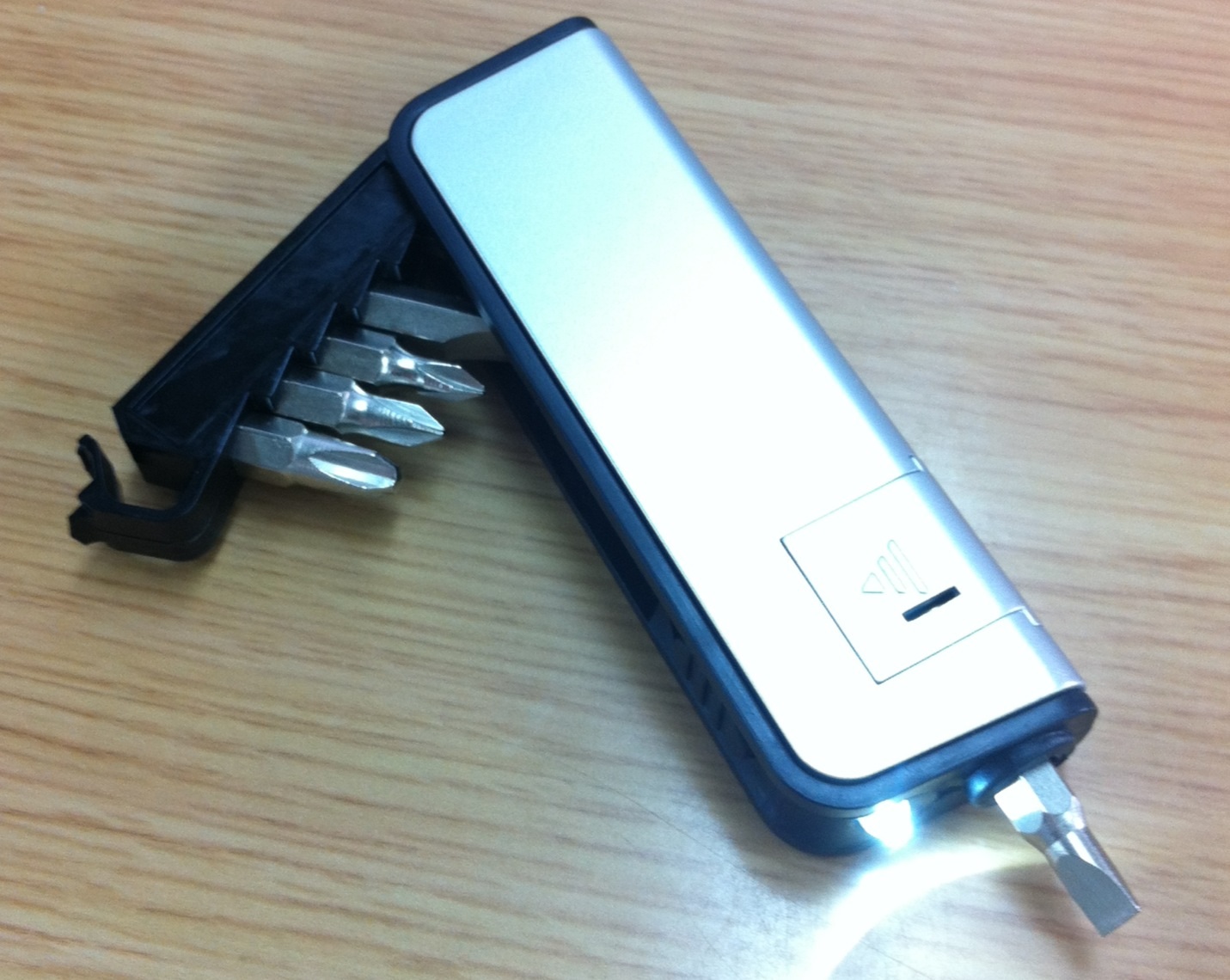 で、たまに、こ洒落たポーチなんてのがありますが、いぜん、巻き取りケーブル式のUSBマウス がついてたり、イヤフォン(音質は悪いですが)とか、USBハブ とかがついてましたが、今回は、ちょっとあったら便利かな? って感じの、ミニドライバーセット がついてました。